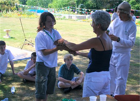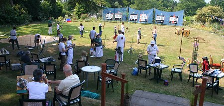 There were 22 people who shot at Sway Manor this year on a very hot day. The numbers worked out well with 11 of our experienced archers and 11 new members. Names were drawn and each experienced archer was paired with a new member.